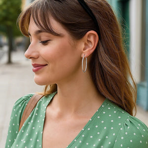 Beautifully beguiling, these slender hoop earrings showcase a darling oval shape. Secured with snapbacks and crafted in fine 14k white gold.