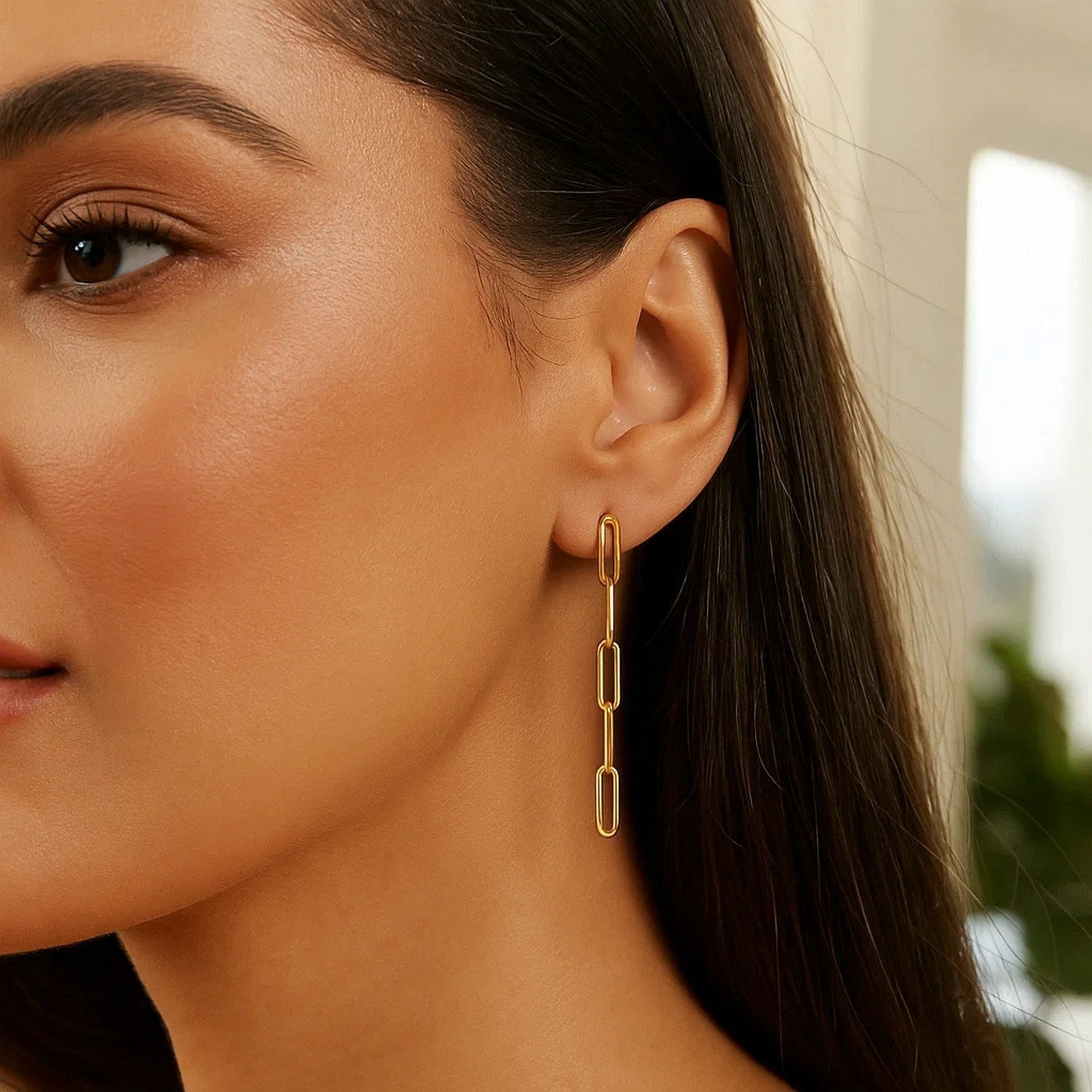 14K Yellow Gold Five Link Paperclip Chain Earrings