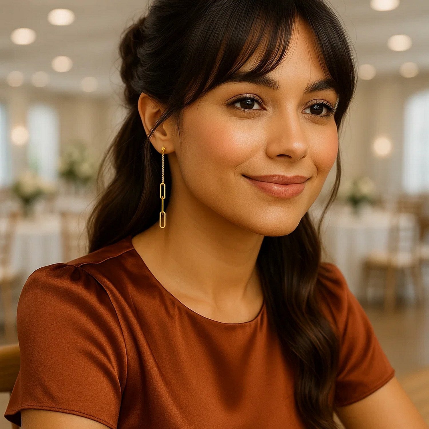 Delicate chain suspends flashing links of paperclip chain in these radiant 14K yellow gold earrings. Post earrings measure 51.7x2.9mm and are held in place by pushback clasps.