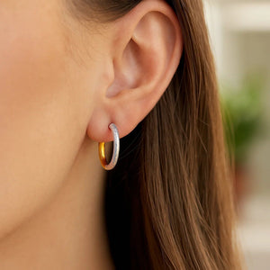 Delightful hammered detailing showcases the playful elegance of these hinge hoop tube earrings. Crafted in exquisite 14k white and yellow tone gold.
