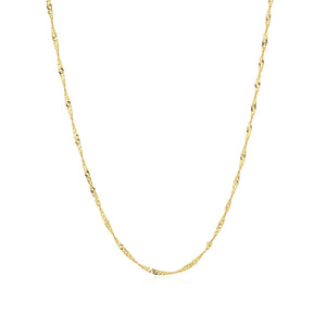 This Singapore chain comes in 10k yellow gold and has a width of 1.5 millimeters.