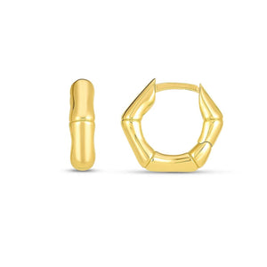 These Bamboo hoop earrings are the perfect elegant & stylish design. These will definitely add a bit of uniqueness to your collection. Crafted in 14k yellow gold with a high polish finish & a snap closure.
