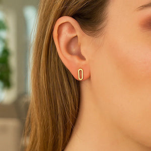 These elegant 14k yellow gold earrings feature a stylish variation of a modern paperclip chain link. Post earrings are held in place by pushback clasps.