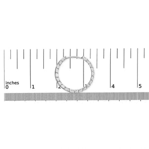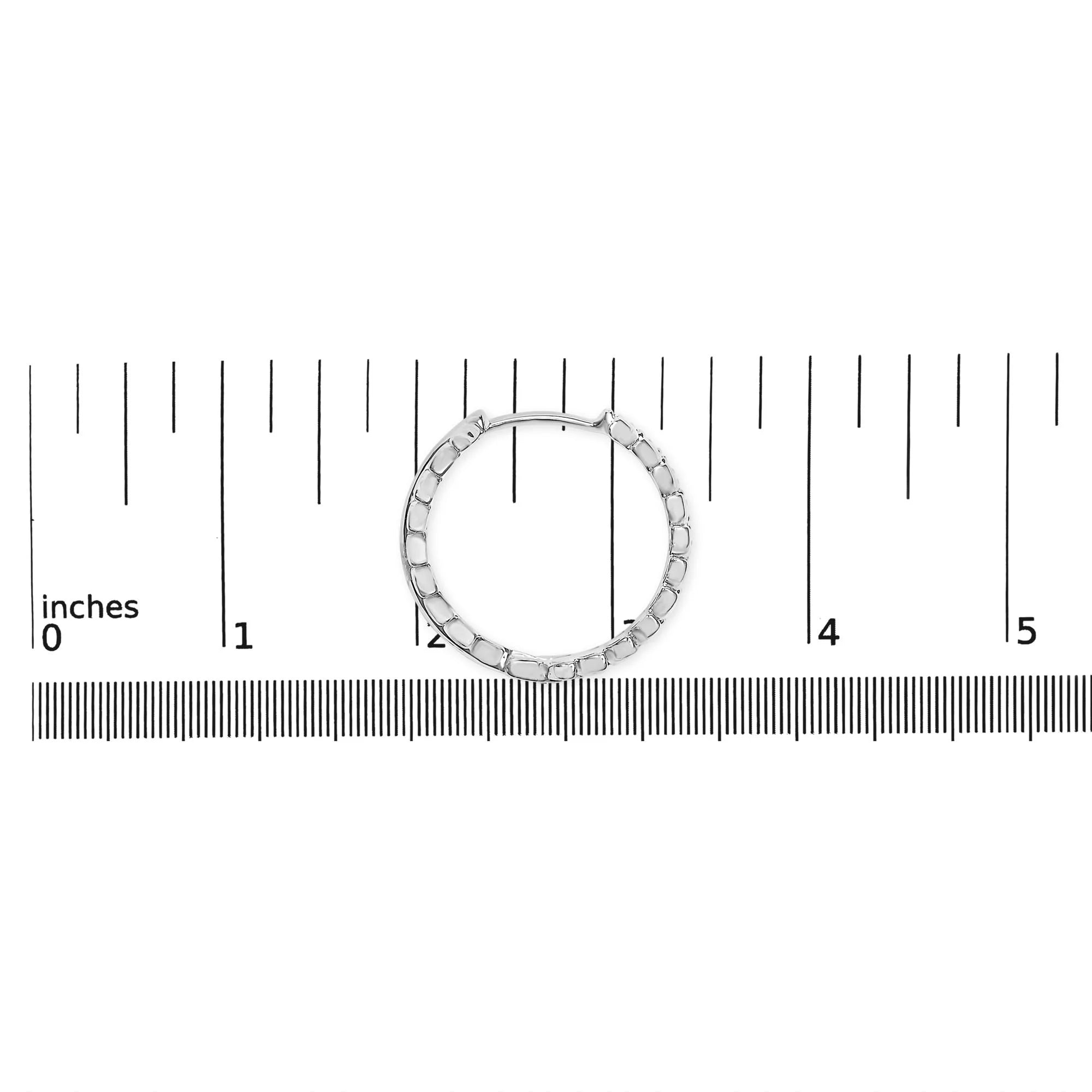 Discover the refined elegance of these 14K white gold hoop earrings, where sophistication meets sparkle in a dance of pristine craftsmanship. Encrusted with lab-grown diamonds, boasting an F-G color and VS1-VS2 clarity, each gem is meticulously aligned within the enchanting leafy wreath design. This unique adornment frames a row of stunning diamonds, harmoniously balanced by intricate leaf motifs gleaming on each side. Rhodium plating enhances their lustrous allure, ensuring durability and an extra touch of brilliance that catches the light with every turn. Measuring a perfect 3/5 inch in length, these earrings offer an exquisite presence without overwhelming. They are secured comfortably with a hinged snap closure, providing both elegance and ease, making them ideal for every cherished moment.