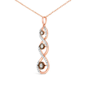 10K Two Toned Gold Plated .925 Sterling Silver 1/2 Cttw Round Diamond Twisted 18" Pendant Necklace (Champagne Color, I2-I3 Clarity)