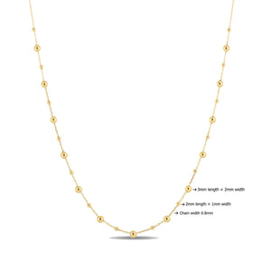 This Bead Station necklace is beautifully crafted in 14k yellow gold with a high polish finish and closes with a lobster clasp. Measuring 18 inches in length.