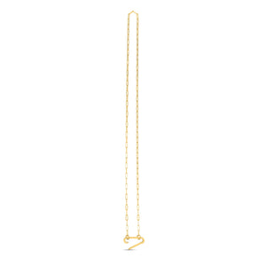 The Elongated Link Paperclip necklace is a unique addition to complete your look & express your style. Crafted in 14k yellow gold with a high polish finish & push lock clasp. Measuring 18 inches in length.