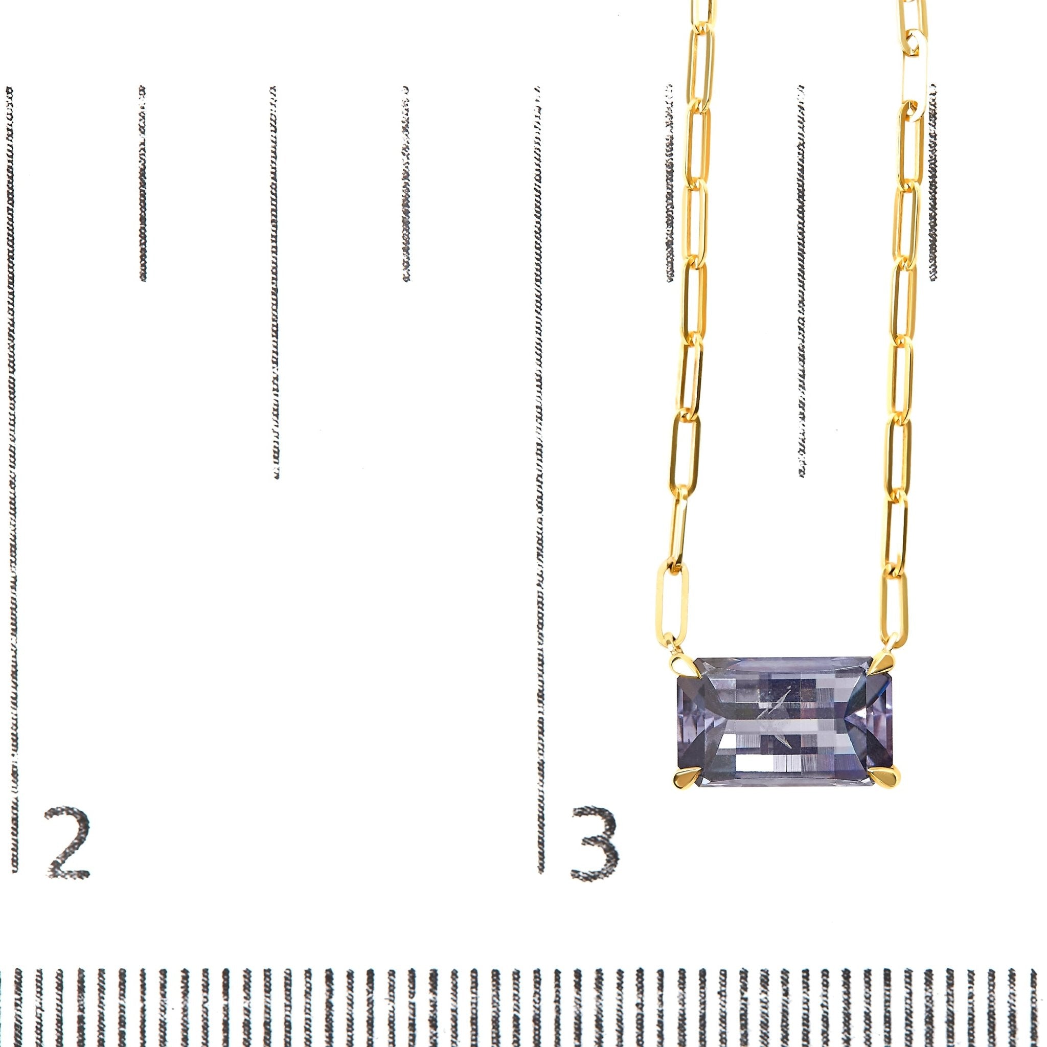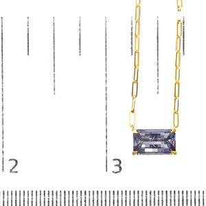 Discover the epitome of elegance with our 14K Yellow Gold Natural Pixel Cut Emerald Bicolor Tanzanite Pendant Necklace, a true masterpiece of nature's beauty. Crafted from luxurious 14K yellow gold, this necklace features a breathtaking 2 7/8 cttw emerald-cut tanzanite gemstone. The unique pixel cut enhances the gemstone's brilliance, showcasing its mesmerizing bicolor hues. Set in a secure 4-prong setting, the 10 x 6 mm tanzanite gemstone exudes a radiant purple glow, adding a touch of glamour to any attire. The 18-inch paperclip chain complements the pendant perfectly, while the lobster claw clasp ensures a secure and comfortable fit. Perfect for women who appreciate exquisite craftsmanship and natural beauty, this pendant necklace is a timeless addition to any jewelry collection.