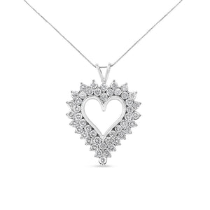 .925 Sterling Silver 4 Cttw Round-Cut Double Row Composite Diamond Heart 18" Pendant Necklace (K-L Color, I1-I2 Clarity)