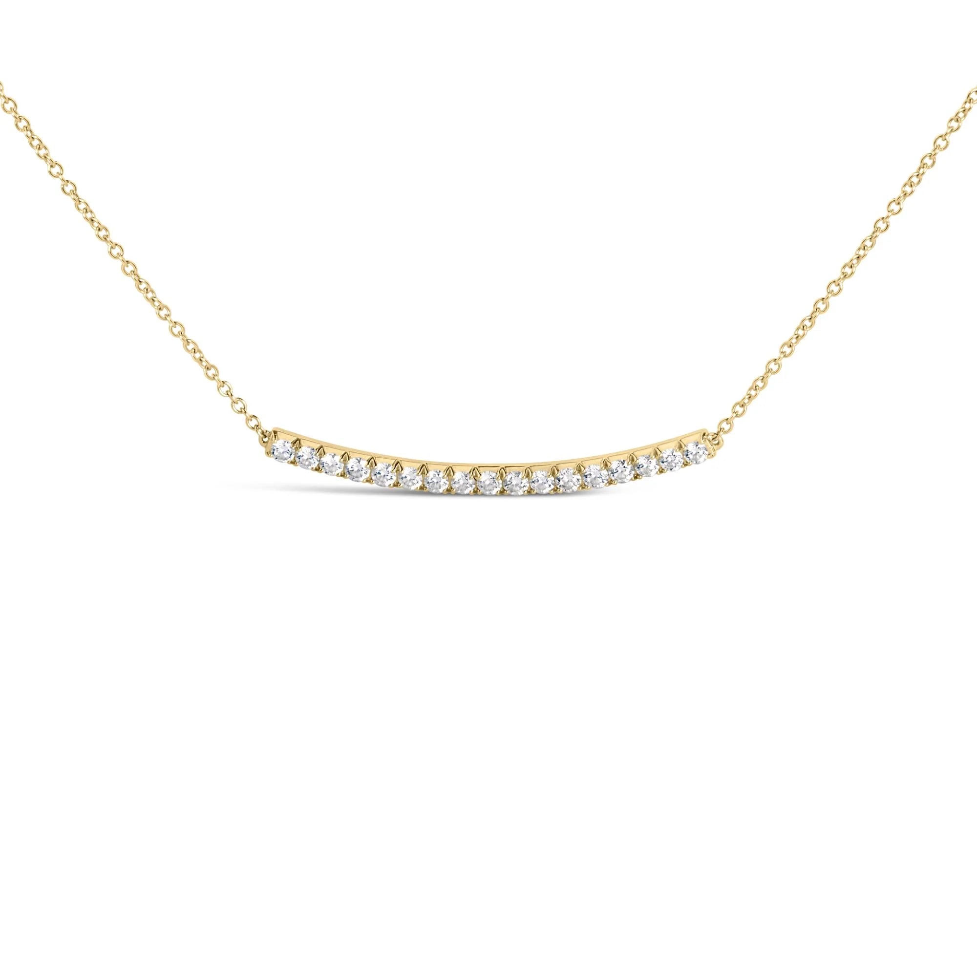 14K Gold 1.00 Cttw Diamond Curved Bar Pendant Necklace (H-I Color, VS2-SI1 Clarity) - 18 Inches