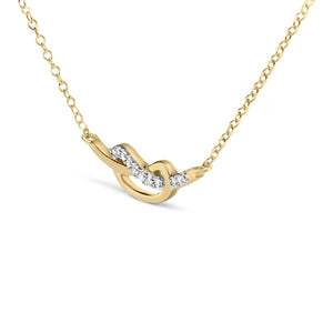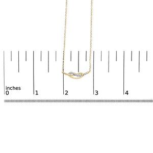 Embrace eternal elegance with this exquisite infinity ribbon pendant necklace, masterfully crafted from .925 sterling silver and lavishly adorned with a 14K yellow gold plating. Each curve of the ribbon is meticulously designed to catch the light, while natural diamond accents sprinkle the piece with a subtle, entrancing sparkle. These diamonds, boasting I-J color and I1-I2 clarity, are sourced naturally, ensuring your adornment is not only beautiful but also ethically conscious. Suspended on a classic 18-inch cable chain and secured with a dependable spring ring clasp, this necklace promises both comfort and style. Perfect for both everyday wear and special occasions, this pendant is a timeless addition to any jewelry collection, offering a symbol of infinite beauty and endless possibilities.