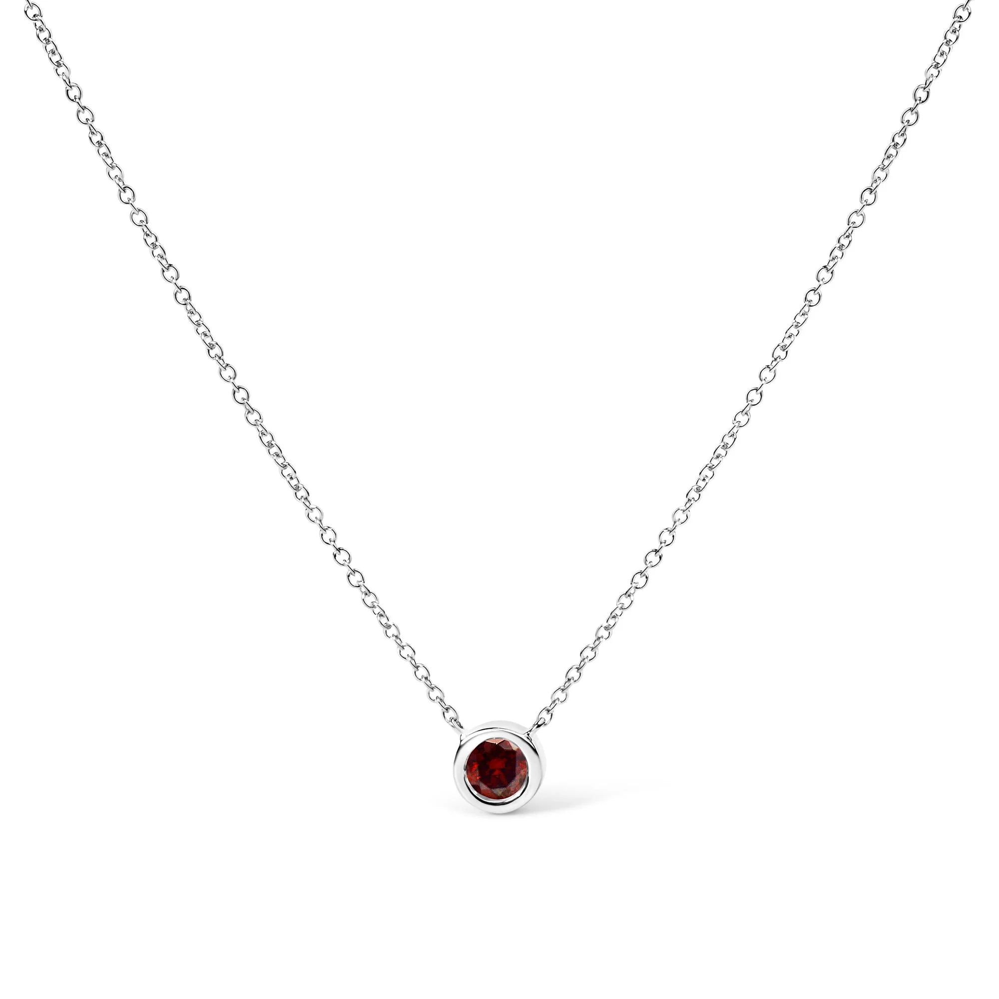 Immerse yourself in the radiant allure of sophistication with this exquisite pendant necklace, delicately crafted from rhodium-plated 14K white gold. Suspended gracefully on an 18-inch cable chain secured by a spring ring clasp, this necklace boasts a lustrous, bezel-set, red lab-grown diamond that captures the essence of refined elegance. Chosen for its remarkable VS1-VS2 clarity, this 1/2 carat gem dazzles with a fiery intensity. The minimalist design accentuates the diamond's vibrant hue, making it a striking centerpiece that beckons the eye. Perfect for those who cherish contemporary elegance, this pendant promises to adorn your neck with a touch of chic luxury and a burst of captivating color, enhancing both everyday wear and special occasions.