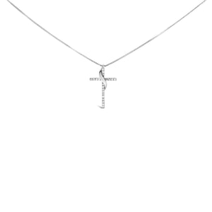 Embrace a sublime blend of faith and finesse with this enchanting necklace, meticulously crafted from rhodium-plated .925 sterling silver. At its heart, a delicately proportioned cross, measuring 3/4 inch, serves as the canvas for a mesmerizing dance of natural, earth-mined diamonds. These gems, 1/4 carat total in weight, sparkle with an H-I color grade and I2-I3 clarity, radiating a celestial shimmer. Elegantly entwined across the symbolic structure is a swirl ribbon, enhancing the pendant with graceful dynamism. Suspended from an 18-inch box chain secured by a spring ring clasp, this piece not only promises secure placement but also completes any ensemble with a touch of heavenly allure. Perfect for the devout and the stylish alike, this pendant becomes a cherished keepsake, or a gift that speaks of deep reverence and exquisite taste.