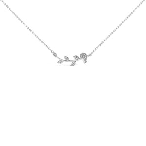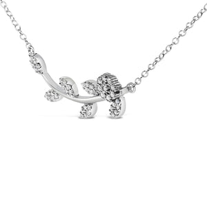 Embrace nature's elegance with this exquisite rhodium-plated .925 sterling silver pendant, fashioned in a whimsical branch and leaf motif that evokes the serene beauty of the forest. Adorned with natural earth-mined diamonds totaling 1/5 carat, each gemstone flaunts a clarity of SI1-SI2 and a color range of H-I, capturing light to bestow a delicate shimmer akin to dewdrops under the morning sun. The 18-inch cable chain, secured gracefully with a spring ring clasp, lays daintily along the collarbone, offering both comfort and style. This piece not only highlights craftsmanship and the allure of responsibly sourced diamonds but also symbolizes growth and renewal, making it a thoughtful gift or a meaningful addition to your jewelry collection.