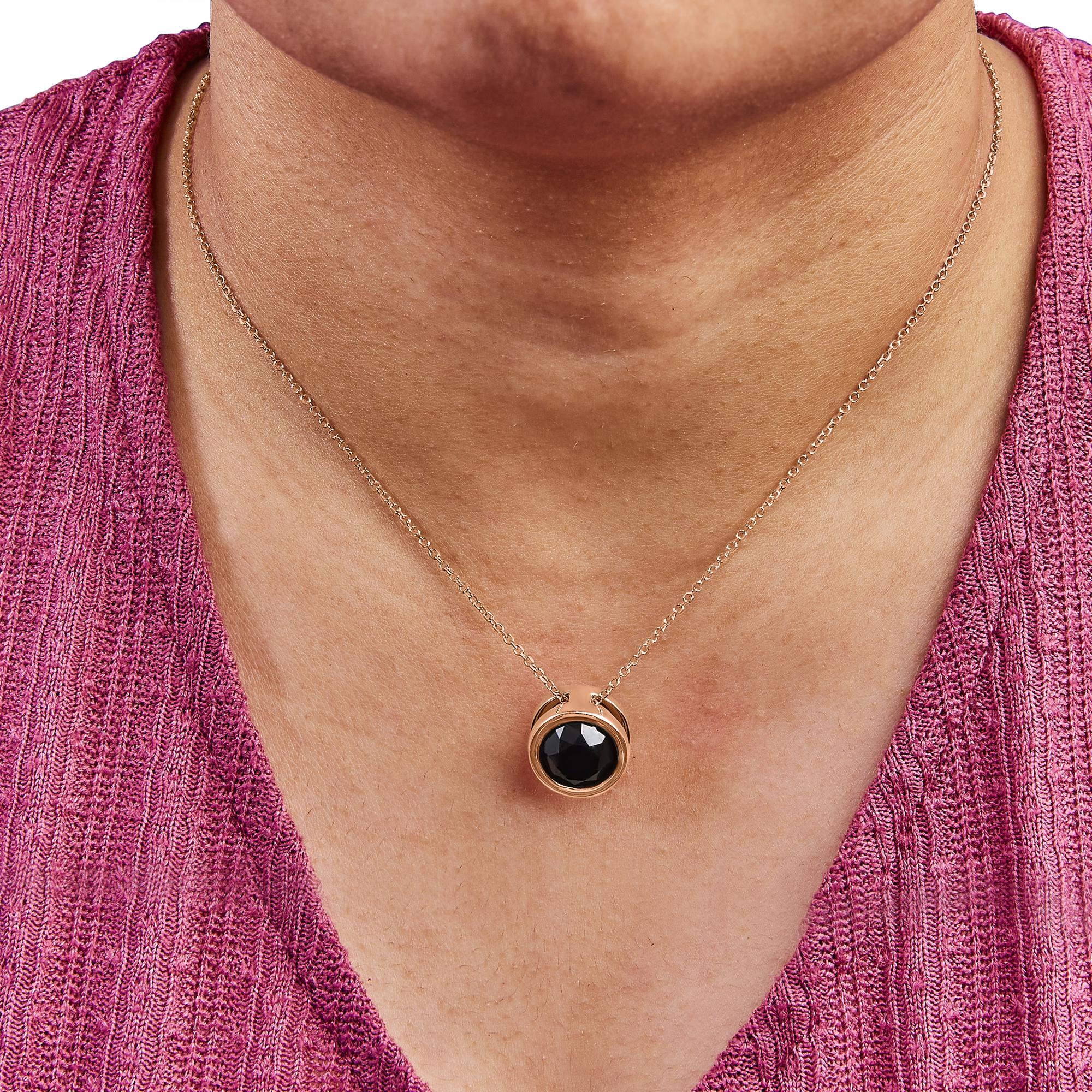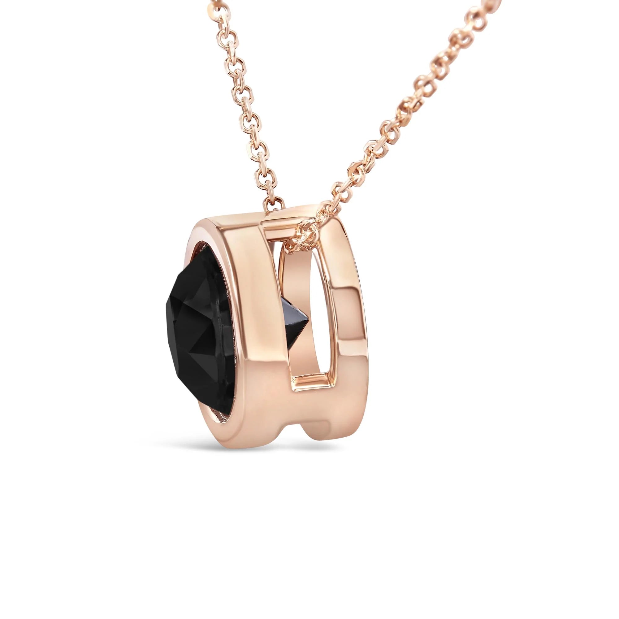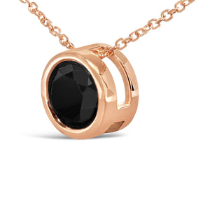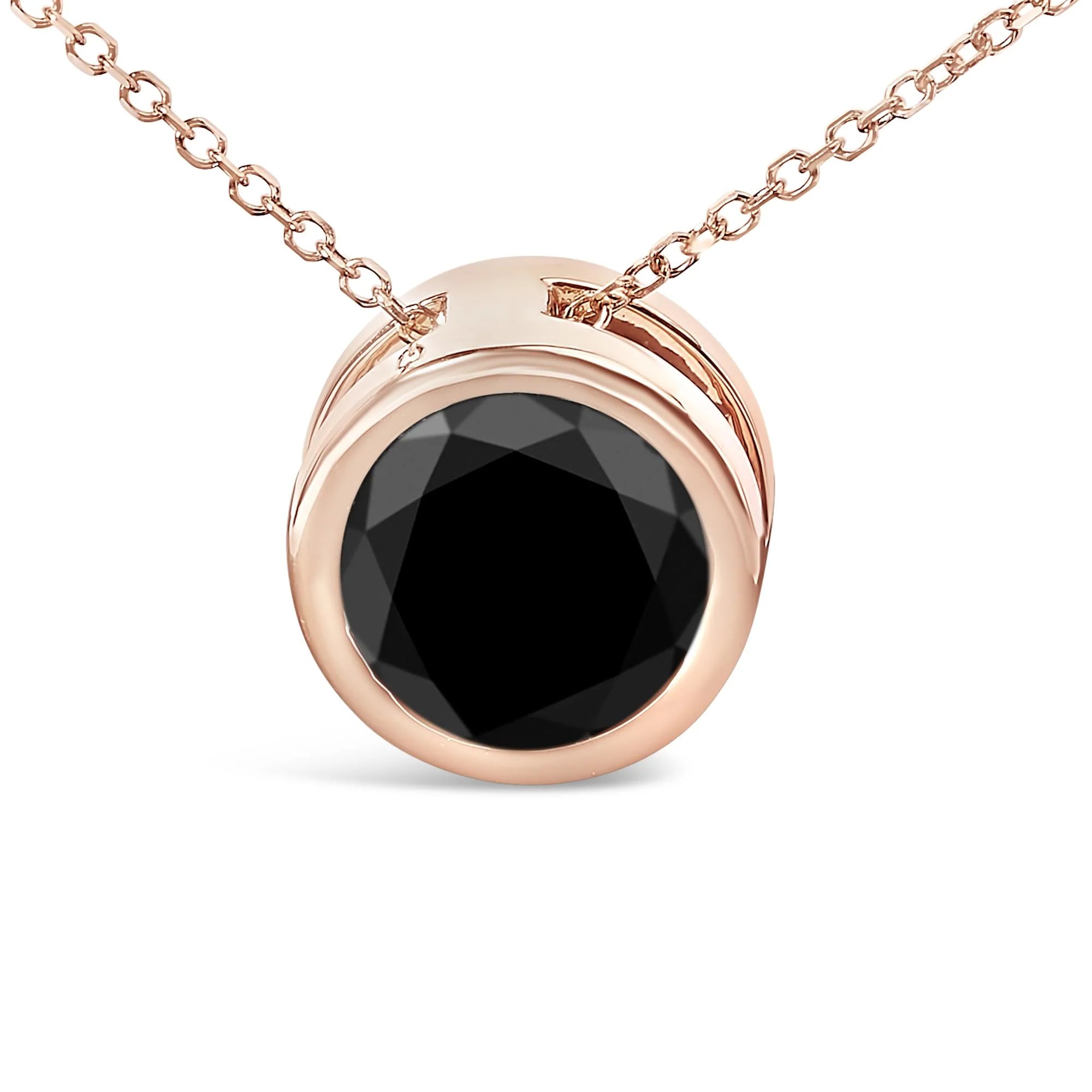 14K Rose Gold Bezel-Set Black Round Diamond Solitaire Pendant Necklace (Black Color, I2-I3 Clarity) - 18"