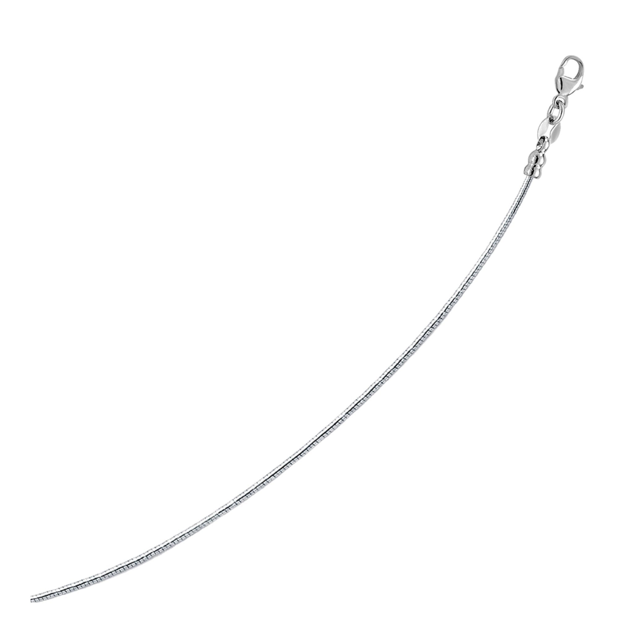 A fabulous classic in the form of a round omega chain 14k white gold necklace. Secured with a fancy screw off lobster clasp, this beauty is available in sizes 16 inches, 17 inches, 18 inches, and 20 inches.