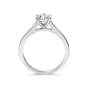 Immerse yourself in the exquisite simplicity of this solitaire engagement ring, where a single lab-grown diamond, brilliant in its 1.0 carat weight, luxuriously nestles within four sleek prongs. Crafted from lustrous 14K white gold, the ring features a polished band that glimmers with a high-shine finish, elegantly complementing the gem's F-G color and VS2-SI1 clarity. This artisanal creation is not just a symbol of commitment but a masterpiece of modern craftsmanship, designed to enhance the diamond's fiery sparkle with every movement. Originating from a lab, this diamond offers both exceptional quality and an ethical choice, ensuring your engagement is marked by both beauty and integrity.