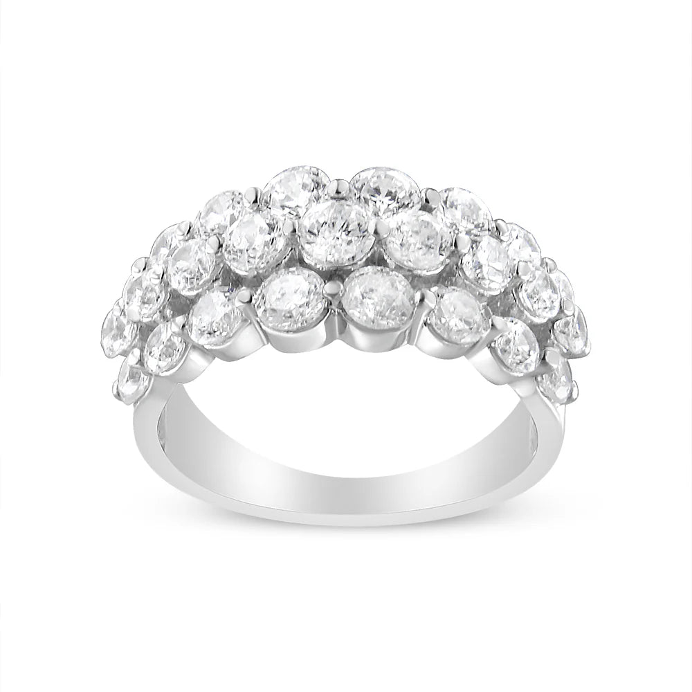 Introducing a dazzling masterpiece that encapsulates elegance and sophistication. Crafted with utmost precision, this 10K White Gold Diamond Band Ring is a true embodiment of luxury. Adorned with 25 round brilliant cut diamonds, totaling an impressive 2 1/2 carats, it effortlessly captures the light, creating a mesmerizing sparkle that will leave you breathless. The natural diamonds, with their I-J color and I1-I2 clarity, are delicately set in a 2-prong setting, enhancing their radiant beauty. This fashion ring, designed exclusively for women, exudes glamour and grace, making it the perfect accessory for any occasion. Indulge in the allure of this magnificent diamond band ring and experience the joy it brings as it gracefully adorns your finger.