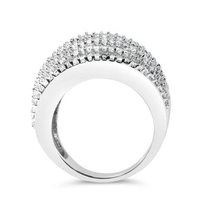 14K White Gold 3.0 Cttw Princess Cut Natural Diamond 9 Row Cocktail Band Ring (H-I Color, SI1-SI2 Clarity)