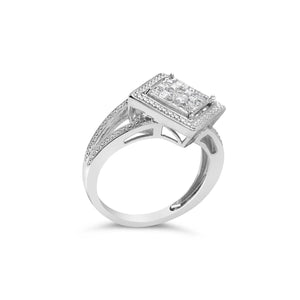 Introducing a mesmerizing masterpiece crafted for the elegant souls! This .925 Sterling Silver Rhombus and Beaded Halo Ring effortlessly captures attention with its invisible set Princess-Cut Diamonds. With a total weight of 1/3 cttw, the 36 dazzling diamonds adorn this ring in a symphony of brilliance. The H-I color diamonds shimmer with grace, while the SI1-SI2 clarity ensures utmost clarity. Designed to allure, this exquisite ring is a true symbol of sophistication and femininity. A must-have for women who appreciate the finest things in life.