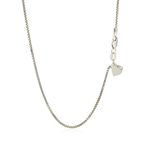 Crafted, in sterling silver this adjustable box chain measures a width of 1.4 millimeters and features a heart dangle accent. The chain is adjustable up to 22 inches and is fastened securely with a lobster clasp.