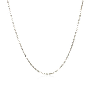 This rhodium-plated cable chain comes in sterling silver and has a width of 1.1 millimeters.