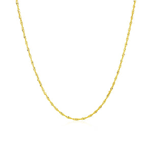 This Singapore chain comes in 10k yellow gold and has a width of 1.0 millimeters.