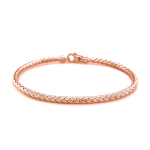 Exquisite woven detailing highlights the chic style of this 14k rose gold bangle. Quite a beauty, this comes in size 7 1/4 inches and is secured with a lobster clasp.