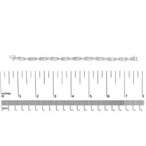 Introducing a dazzling masterpiece that will leave you breathless - a 14K White Gold Tennis Bracelet adorned with 1.0 Cttw of exquisite Princess Diamonds. Crafted with precision and elegance, this bracelet features an enchanting invisible setting, allowing the diamonds to seamlessly blend together in a mesmerizing display of brilliance. With 99 diamonds in total, each stone is carefully selected for its I-J color, radiating a captivating sparkle. The 7.25" link design gracefully embraces your wrist, while the secure box clasp ensures a comfortable and worry-free wear. Perfect for the modern woman who appreciates timeless beauty, this bracelet is a true testament to the allure of natural diamonds. Indulge in luxury and elevate your style with this stunning piece that effortlessly captures the essence of elegance.