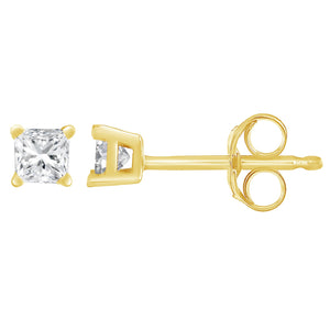 • Scintillating sparkle – nothing beats the brilliance of natural diamonds! these understated 14kt gold stud earrings feature square princess cut near-colorless gemstones in a simply elegant four-prong design. They feature butterfly push backs and notched friction posts. These pierced earrings will stay securely on your ears for comfortable wear all day long. You'll want to show off this simple and sparkling jewelry every day!