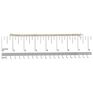 Imbued with a radiant harmony of luxury and geometric sophistication, this exquisite tennis bracelet features a stunning sequence of triangle-shaped links, each exquisitely cradled in 14K yellow gold. Encompassing 4.00 carats of natural diamonds with a luminescent H-I color and I1-I2 clarity, the gems dazzle brilliantly, embodying both purity and the fiery dance of light. Crafted with meticulous precision, the bracelet measures 7 inches, tailored to grace wrists up to that size with elegance and comfort. The security of the piece is paramount, equipped with a robust box clasp complemented by a safety latch that promises peace of mind alongside unparalleled style. This masterpiece is a testament to timeless craftsmanship and an ode to the art of classic finesse, making it a perfect herald of refined taste for any ensemble.