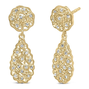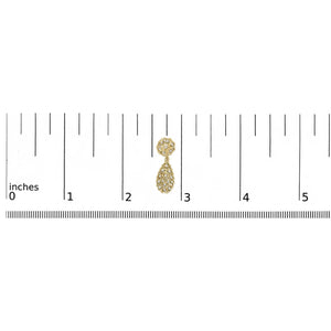 Drape yourself in elegance with these exquisitely crafted earrings, which epitomize grace and sophistication. Masterfully wrought from .925 sterling silver and bathed in a lush 14K yellow gold plating, these pieces glisten with an undeniable aura of luxury. Each earring is designed in a captivating teardrop silhouette, intricately detailed with filigree work that whispers tales of old-world craftsmanship. Embellished with natural diamonds that boast a clarity of I1-I2 and a color range of H-I, these gems catch the light, transforming every subtle movement into a dazzling display of brilliance. Measuring a perfect 4/5 inches in dangle length, they offer a charming drop that complements both the curves of your face and the lines of your neck, secured comfortably with a reliable push-back closure.