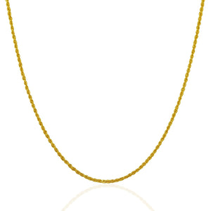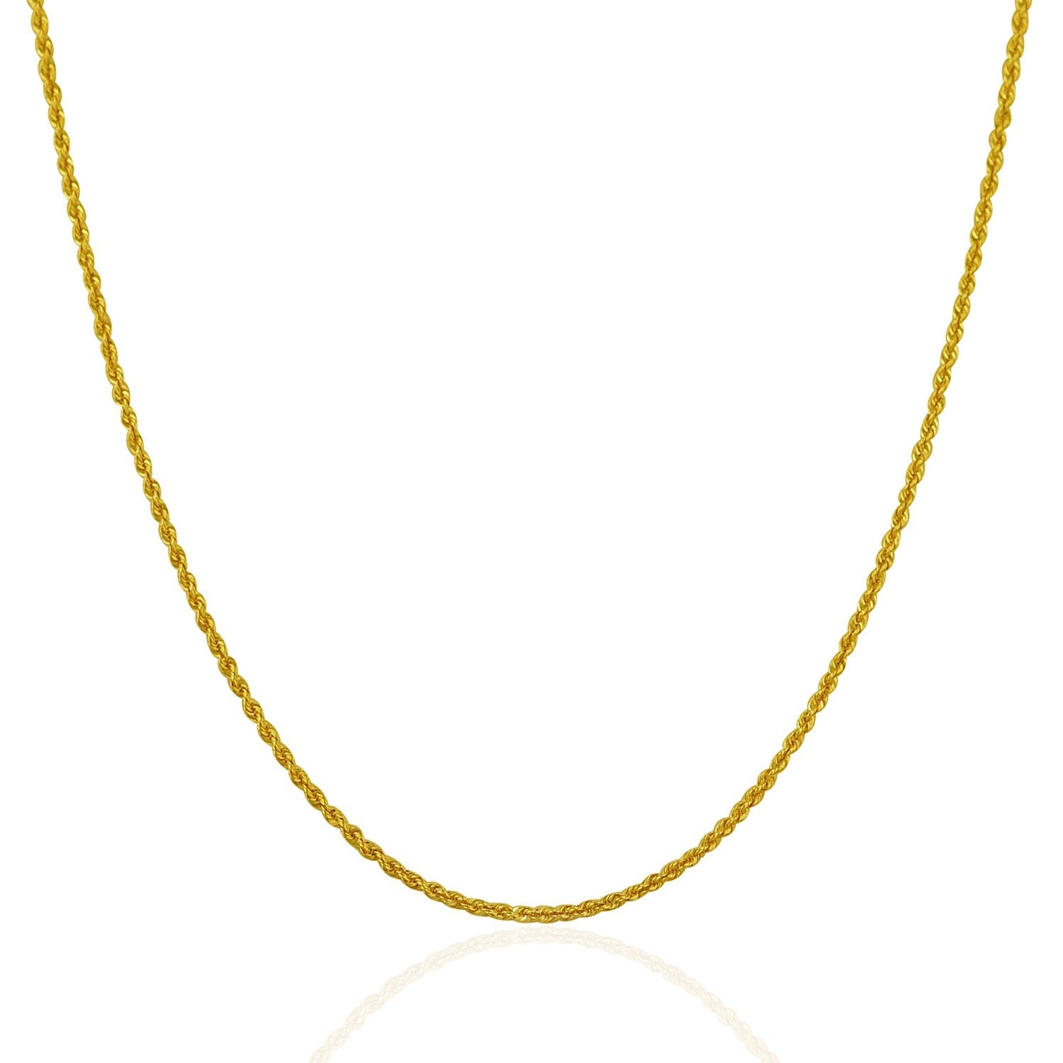 This solid rope chain comes in 14k yellow gold and has a width of 1.25 millimeters.