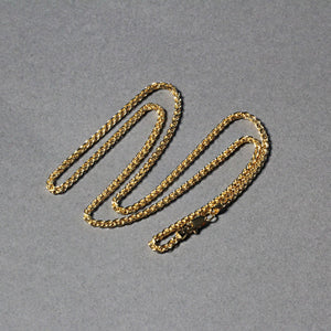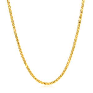 This round wheat chain comes in 14k yellow gold and has a width of 2.1 millimeters.
