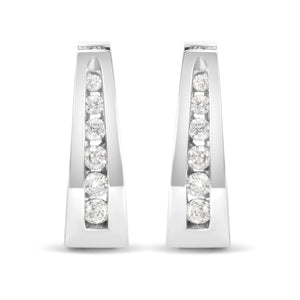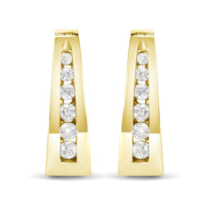 14K Gold 1/4 Cttw Channel-Set Brilliant Round-Cut Diamond Hoop Earrings (H-I Color, I1-I2 Clarity)