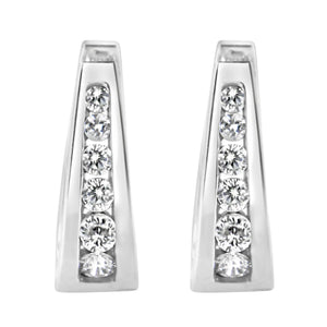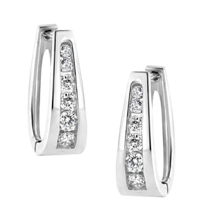 Fashioned in stunning 14k white gold, these beautiful hoop earrings feature 1/4ct of brilliant round cut diamonds in a channel setting that delicately flow half way around the outside of the hoop. A classic piece you can wear everyday.