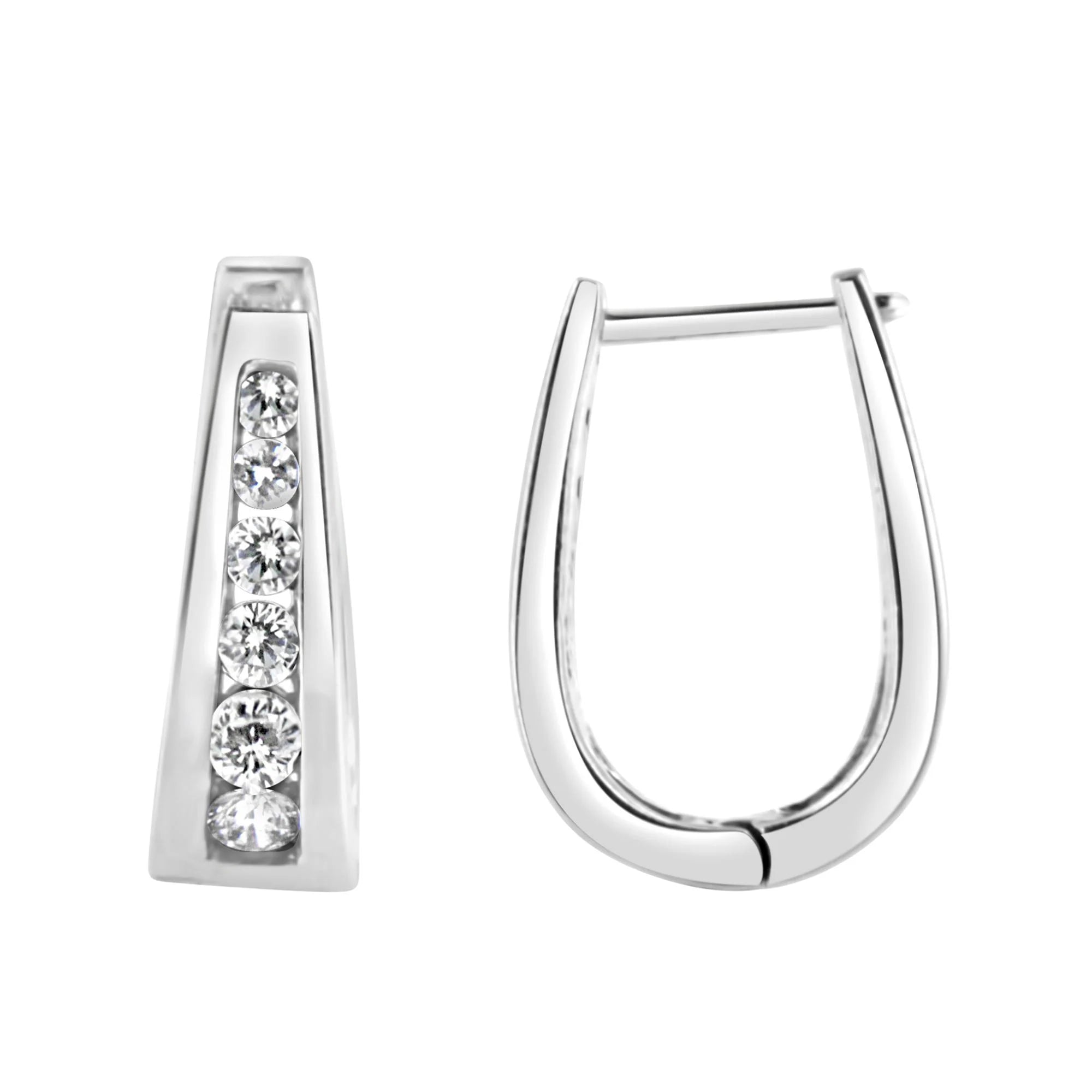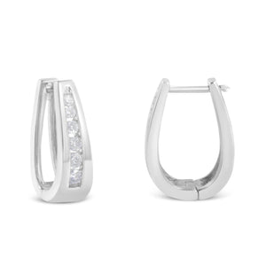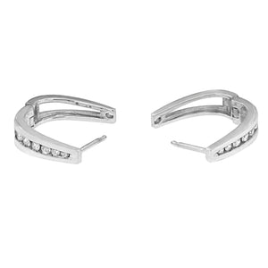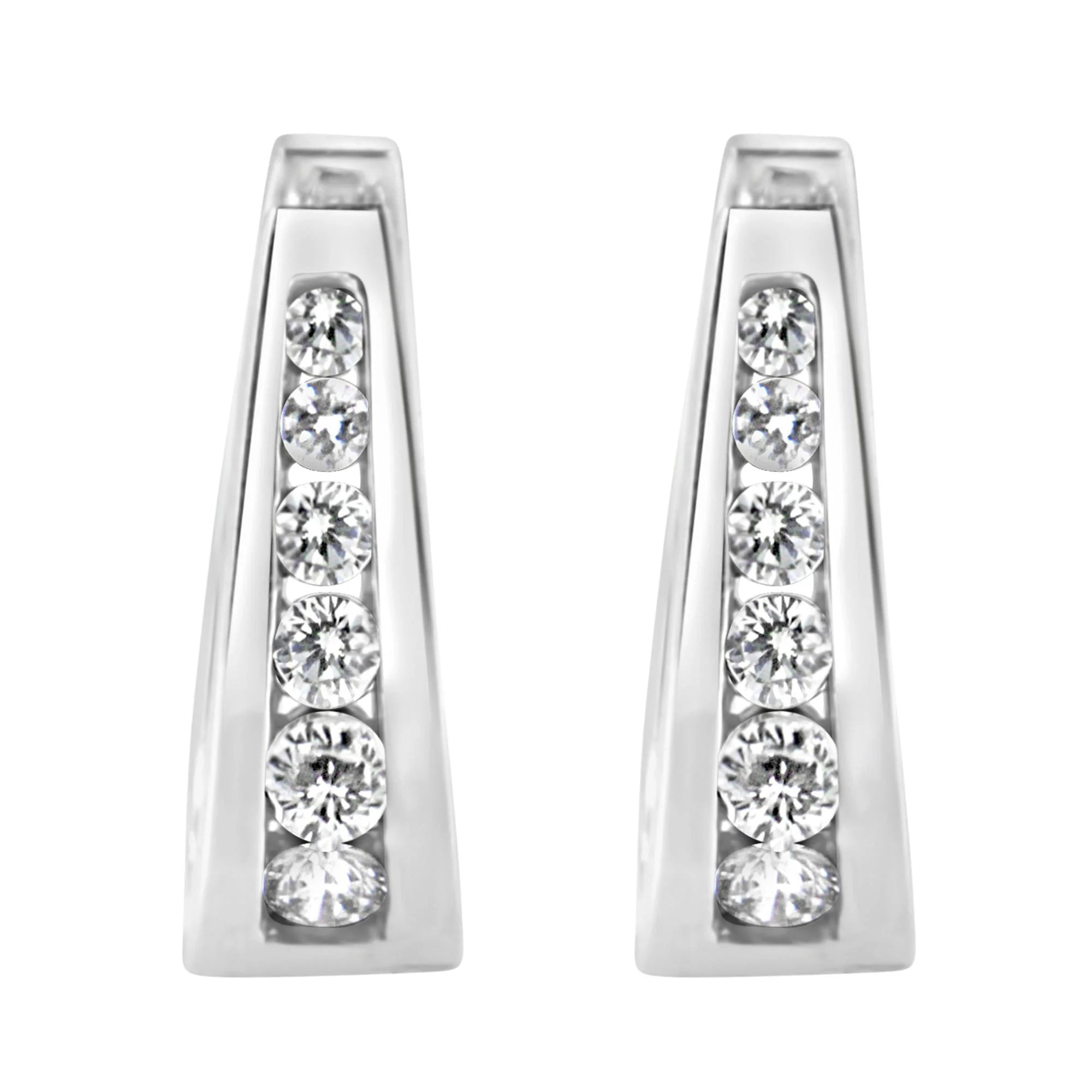 14k White Gold Channel-Set Brilliant Round-Cut Diamond Hoop Earrings (I-J Color, I2-I3 Clarity)
