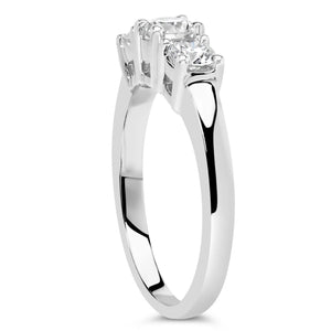 Indulge in the timeless elegance of this exquisite 14K white gold ring band, a treasure that artfully blends modern sophistication with classic allure. At its heart, the ring features a trio of lab-grown diamonds, meticulously aligned to capture and reflect every flicker of light. Each gem, boasting a clarity of VS2-SI1 and a color rating of F-G, is cradled by four secure prongs, ensuring both safety and prominence. This polished, smooth band not only accentuates the brilliance of its stones but also speaks to a commitment to sustainable luxury, given its choice of ethically grown diamonds. Designed as a statement of grace and responsibility, perfect for those who hold the future as dear as the present.