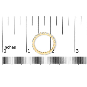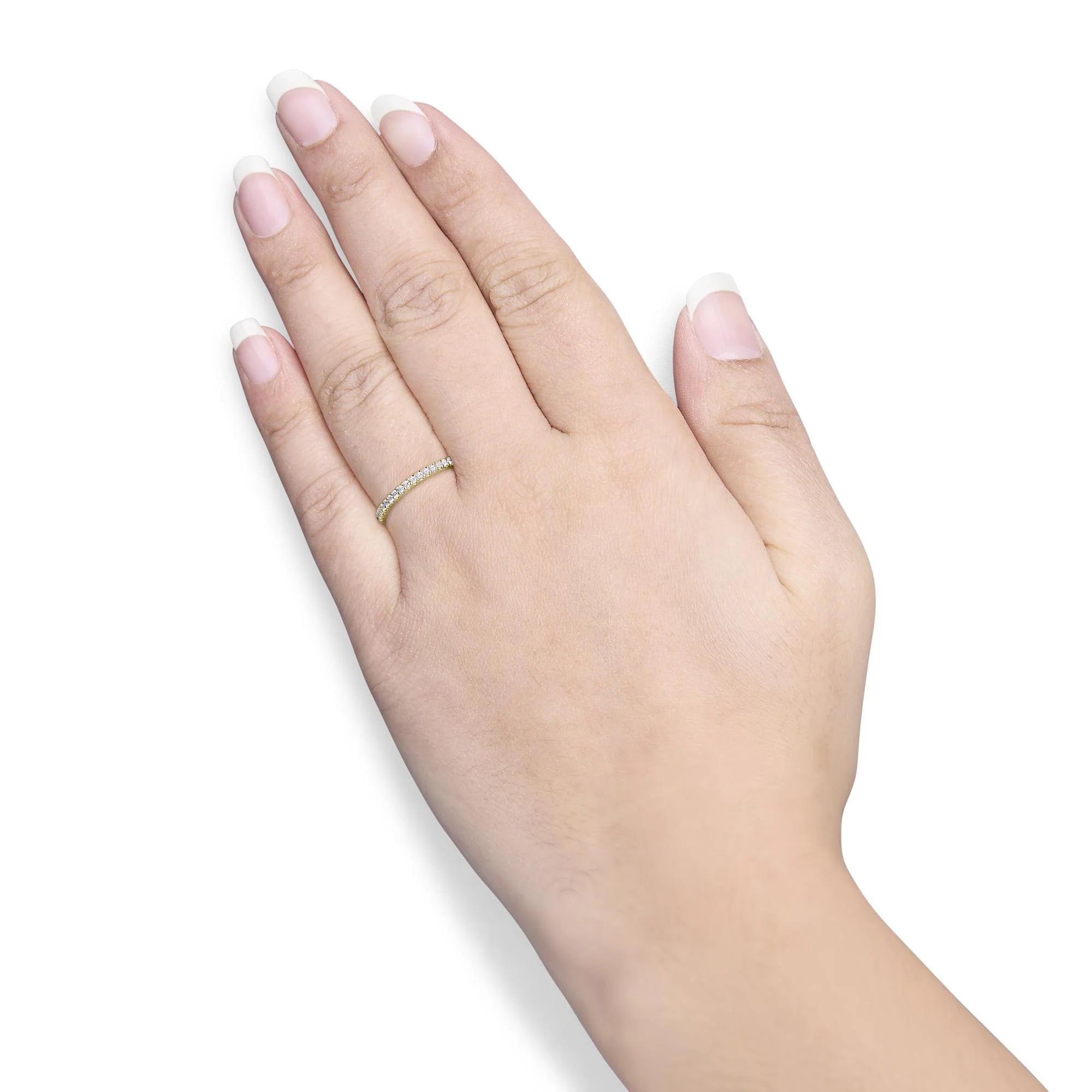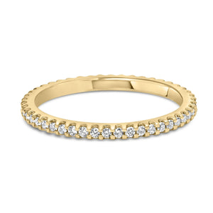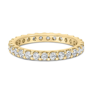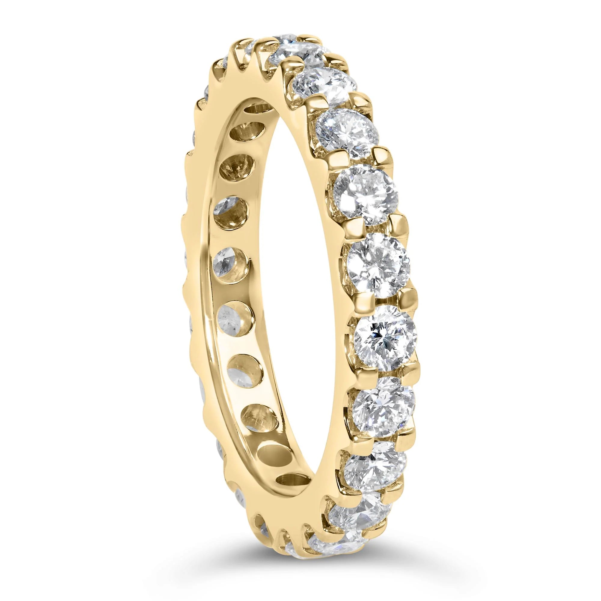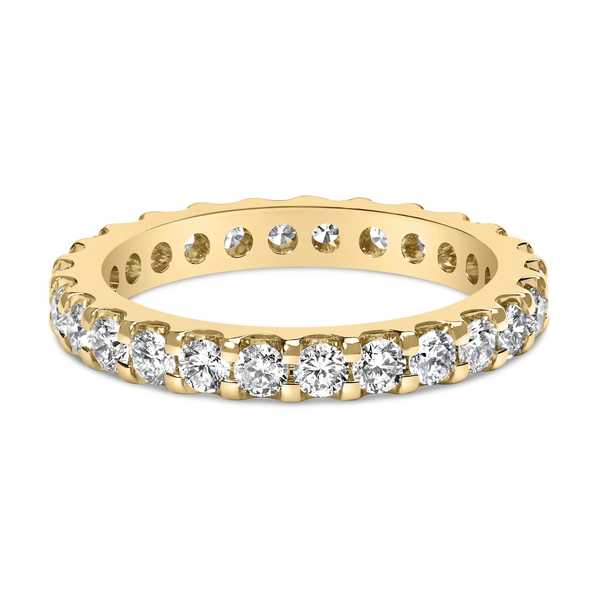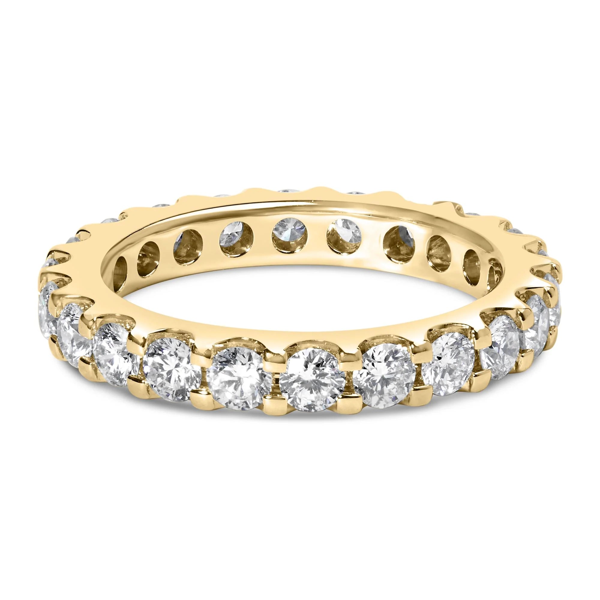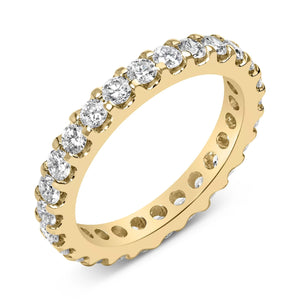Imagine the eternal symbol of love and commitment gracing your finger, this dazzling ring epitomizes pure elegance and timeless sophistication. Every carefully selected natural diamond, with remarkable G-H color and SI1-SI2 clarity, radiates unparalleled brilliance, collectively weaving a lustrous tapestry of 1/3 carats around your finger. The expertly crafted 14K yellow gold band provides a radiant, yet subtle, backdrop, allowing the diamonds to truly sparkle in a shared prong setting that enhances their natural allure. Each stone is expertly secured, with the band's smooth interior and precise cutouts ensuring unrivaled comfort without compromising on security. This exquisite piece captures hearts not merely with its breathtaking beauty but with the story it tells; a story of eternal elegance, devotion, and impeccable craftsmanship, making it an unforgettable guardian of life's most precious moments. This eternity band is set with round-brilliant cut diamonds.