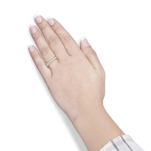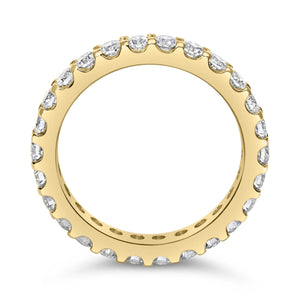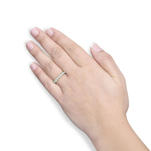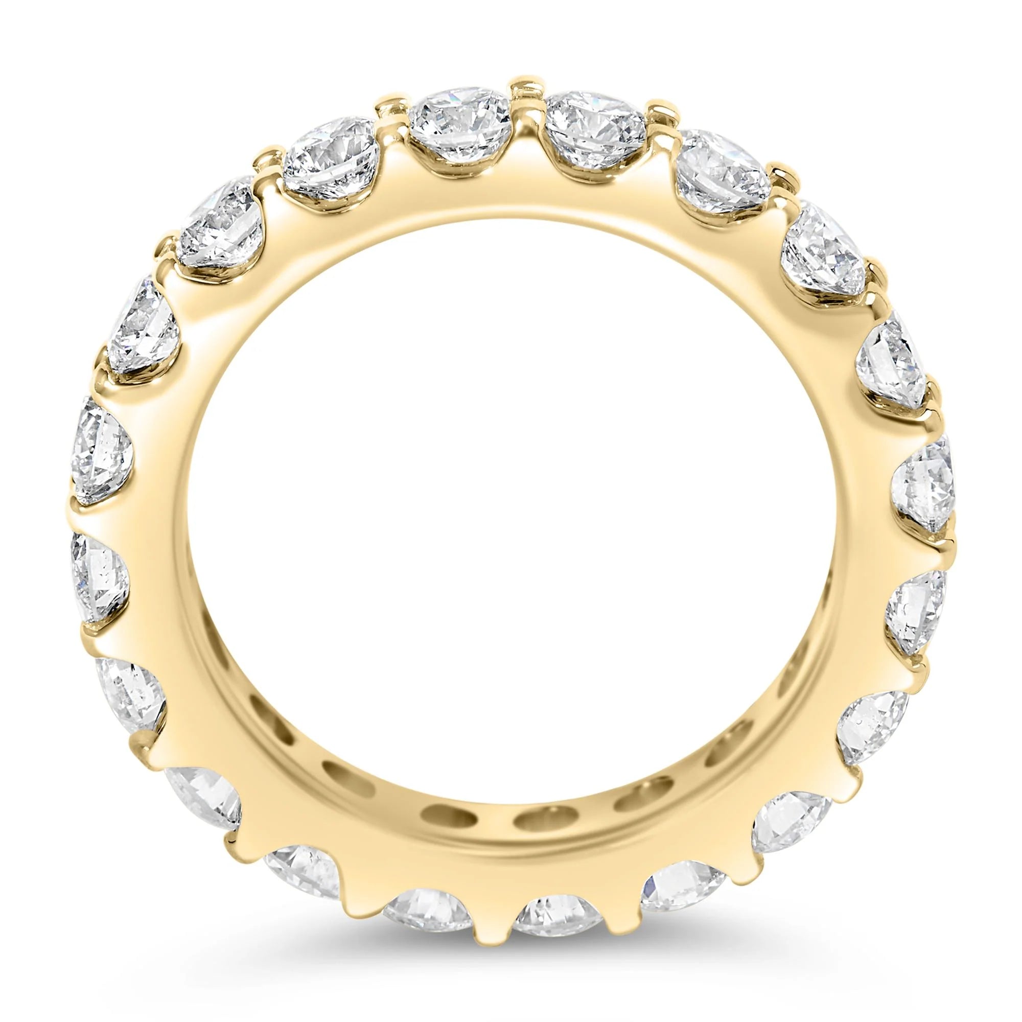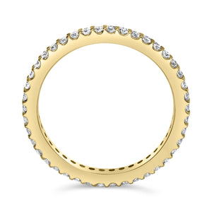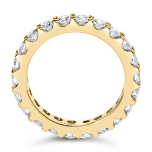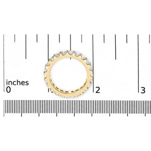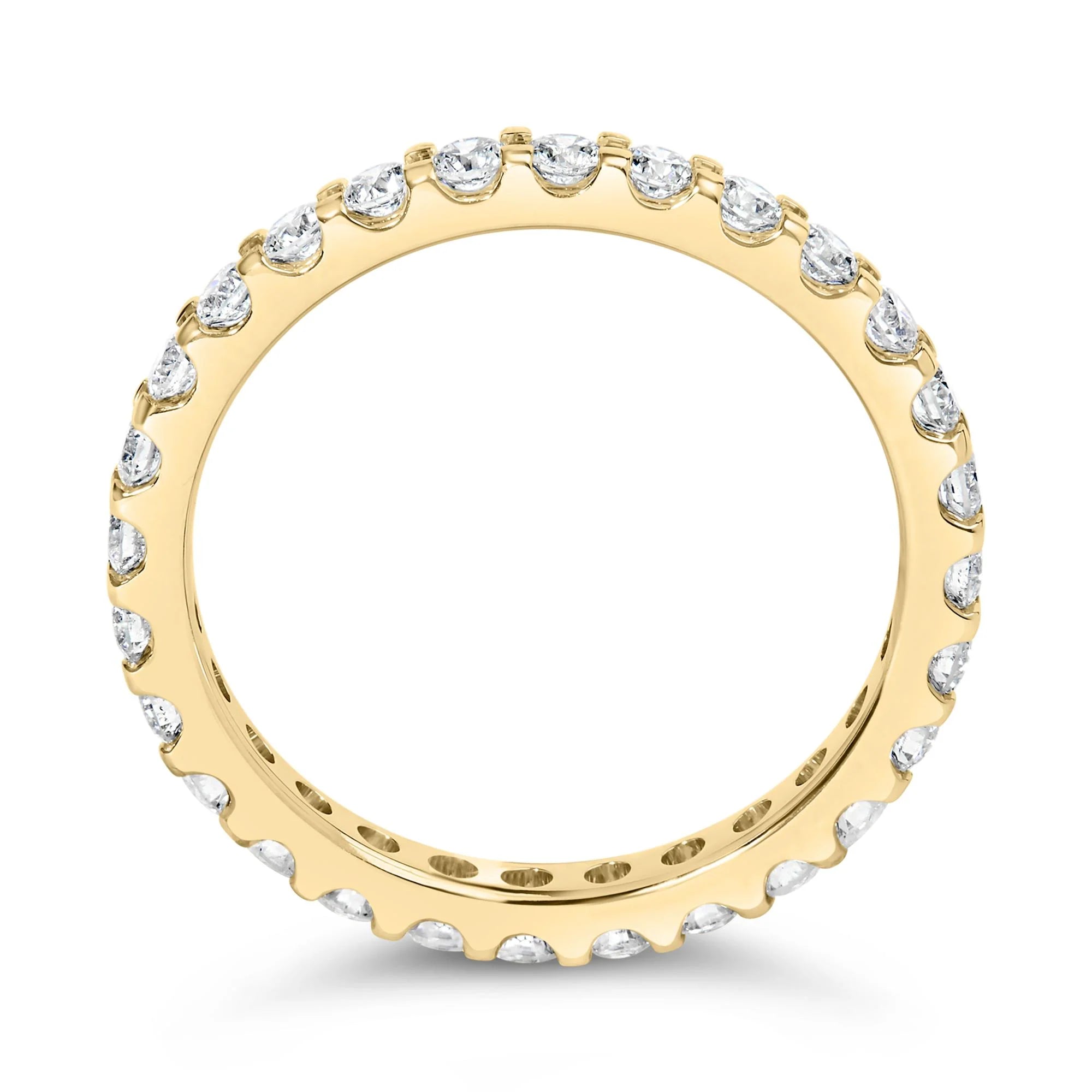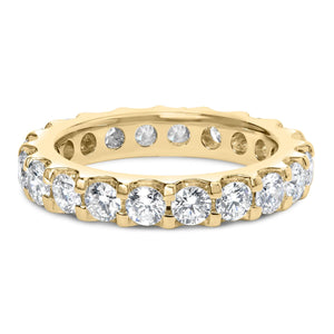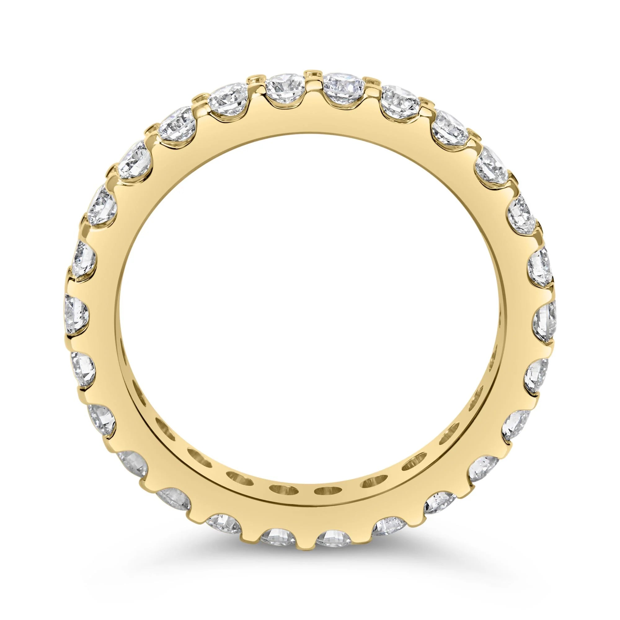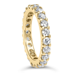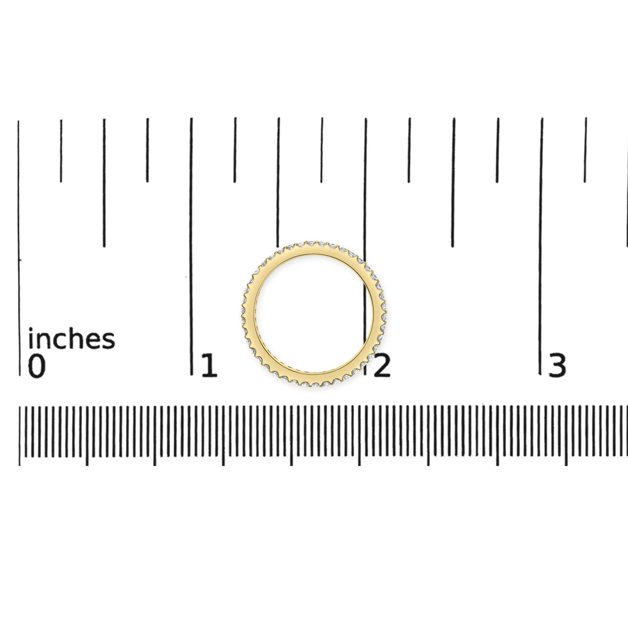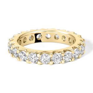 Imagine the eternal symbol of love and commitment gracing your finger, this dazzling ring epitomizes pure elegance and timeless sophistication. Every carefully selected natural diamond, with remarkable G-H color and SI1-SI2 clarity, radiates unparalleled brilliance, collectively weaving a lustrous tapestry of 1/3 carats around your finger. The expertly crafted 14K yellow gold band provides a radiant, yet subtle, backdrop, allowing the diamonds to truly sparkle in a shared prong setting that enhances their natural allure. Each stone is expertly secured, with the band's smooth interior and precise cutouts ensuring unrivaled comfort without compromising on security. This exquisite piece captures hearts not merely with its breathtaking beauty but with the story it tells; a story of eternal elegance, devotion, and impeccable craftsmanship, making it an unforgettable guardian of life's most precious moments. This eternity band is set with round-brilliant cut diamonds.